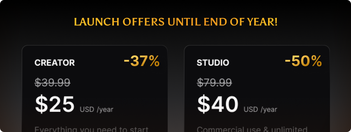 If you're a Studio Plan subscriber, you’re getting early access to several packs and features ahead of the official 2.0 launch on December 8. Explore what’s already available and start using the new tools, art, and improvements before anyone else.