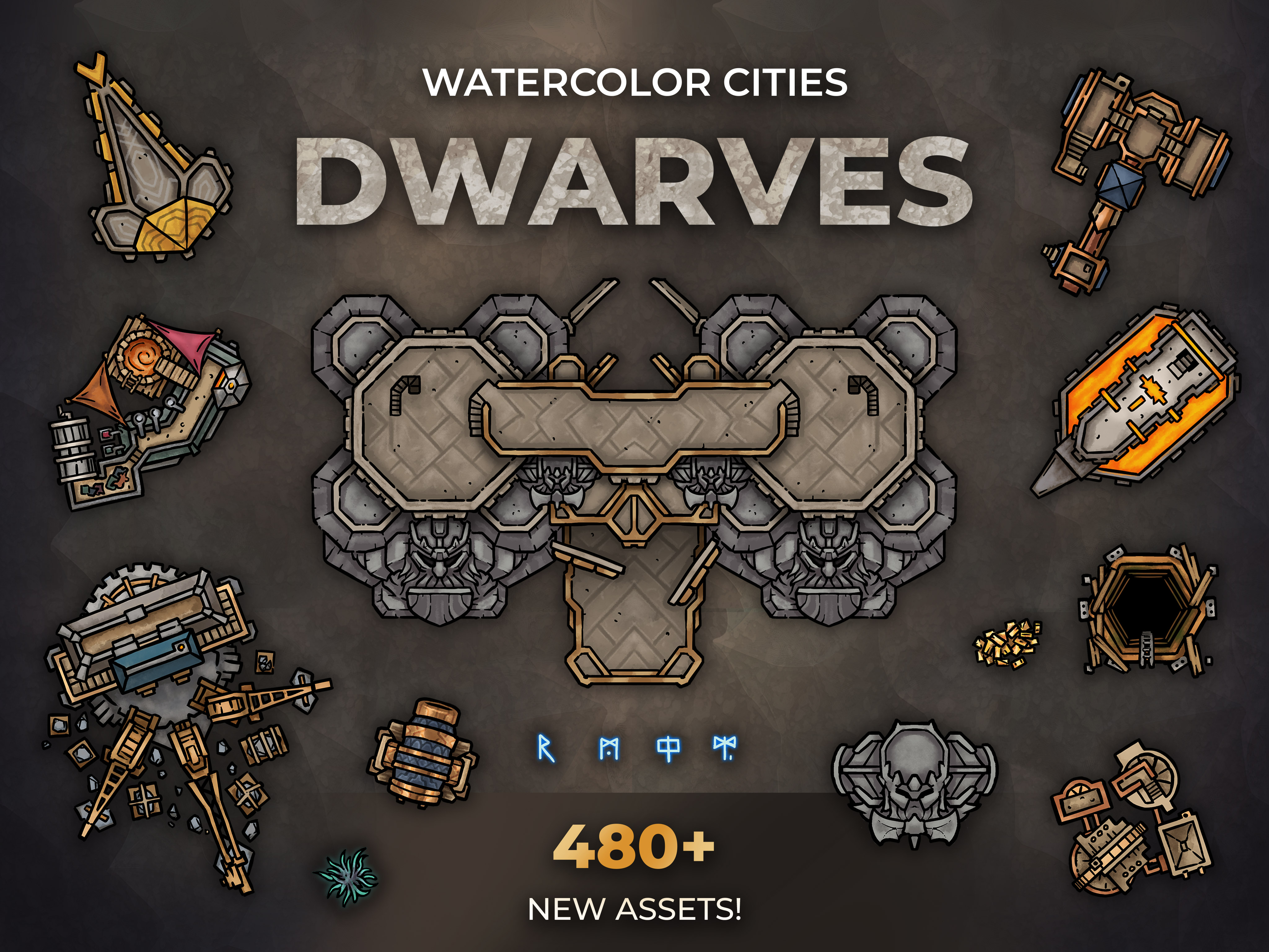 Capture the fiery heart of dwarven civilization with our new Dwarven pack in Watercolor Cities style! 🛠️